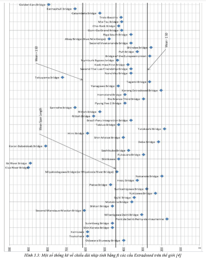 Konstantinos [6] trong luận văn tại đại học Toronto Canada 2008 (A thesis submitted in conformity with the requirements for the degree of Master of Applied Science Graduate Department of Civil Engineering University of Toronto), sau khi thống kê 51 cầu Extradosed trên thế giới cũng đã rút ra kết luận như sau: