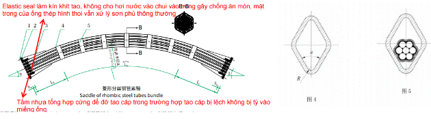 Như đã phân tích ở trên, khi chiều dài nhịp chính tương đối bé, chi phí vật liệu bê tông cũng như cáp dự ứng lực gần tương tự như đối với cầu dầm liên tục thi công hẫng nhưng khi chiều dài nhịp chính tăng lên thì chi phí này sẽ tăng lên theo xu hướng ngày càng lớn hơn so với cầu dây văng. Nguyên nhân là do chi phí vật liệu dùng cho phần kết cấu dầm tăng lên nêu vẫn sử dụng kết cấu cầu Extradosed. Ngoài các kết quả nghiên cứu này, còn một vấn đề khác liên quan đến đặc điểm ứng xử của cầu Extradosed khi chiều dài nhịp chính tăng lên. Đó là vấn đề ứng xử về dao động, mỏi và hủy hoại do ăn mòn. Như đã đề cập ở trên khi chiều dài nhịp chính vượt quá giới hạn về dao động thì phải xét đến dao động của cáp, ảnh hưởng mỏi của cáp ở khu vực neo cáp và trong những trường hợp dó, phải xem xét đến việc sử dụng hệ cáp, hệ neo, hệ giảm chấn như đối với cầu dây văng. Hay nói cách khác, các vật liệu kết cấu, vật liệu đặc chủng như hệ neo, cáp có yêu cầu về chất lượng khắt khe hơn so với neo cáp dùng cho kết cầu dầm bê tông dự ứng lực thông thường. Nếu sử dụng đúng vật liệu theo yêu cầu này thì giá thành cầu Extradosed sẽ còn cao hơn cầu dây văng có cùng chiều dài nhịp chính. Một vấn đề khác là rủi ro khi lựa chọn neo yên ngựa không phù hợp. Các bó cáp trong vùng neo yên ngựa và các chi tiết khác của kết cấu neo yên ngựa là những cấu kiên không thể thay thế vì nằm trong vùng không thể tiếp cận. Do vậy, các quy định của FIB và PTI [11]; [12] đã yêu cầu phải có biện pháp bảo vệ chống lại các nhân tố ăn mòn để đảm bảo các kết cấu này có cùng tuổi thọ với công trình cầu. Thế nhưng, một số cầu Extradosed được xây dựng vừa qua ở nước ta chưa thực sự chú ý đến các yêu cầu này nên đã lựa chọn một loại neo yên ngựa có yêu cầu độ bền chống gỉ chưa rõ ràng. Đó là việc sử dụng neu yên ngựa được tổ hợp từ các ống thép có dạng hình thoi. Một số tính chất cơ lý tối thiểu của vật liệu thép chế tạo neo yên ngựa được ghi trong tập “Chỉ dẫn kỹ thuật của dự án, Mục 07200 – Hệ dây văng…” cho thấy chỉ là thép hợp kim thông thường có giới hạn bền tối thiểu là 410 Mpa, giới hạn chảy tối thiểu là 245 Mpa và độ dãn dài khi đứt tối thiểu là 20%. Ngoài qui định “Các sợi và tao cáp sẽ phải được bảo vệ chống ăn mòn liên tục không bị gián đoạn qua yên ngựa bằng vật liệu phù hợp”, thì theo yêu cầu của chỉ dẫn kỹ thuật nêu trên đã không có một điều nào yêu cầu chống rỉ đặc hiệu cho các ống thép hình thoi này. Trong khi đó toàn bộ các ống thép hình thoi này nằm trong vỏ thép ngoài của neo yên ngựa và chúng được chôn trong bê tông không thể thay thế được. Trong khi đó, trong lòng ống thép hình thoi này hơi nước có thể tích tụ tạo nên môi trường lý tưởng làm rỉ các ống thép dày 3mm. Những dòng chữ tiếng Việt viết thêm vào hình vẽ nhằm giải thích “Elastic seal làm kín khít tao, không cho hơi nước vào chui vào trong gây chống ăn mòn, mặt trong của ống thép hình thoi vẫn xử lý sơn phủ thông thường” chỉ là thuyết minh, mà không hề có tài liệu nào chứng minh định lượng được cả về lý thuyết lẫn thực nghiệm tuổi thọ chống gỉ của ống thép hình thoi dày 3mm này. Phần giải thích chống ăn mòn chỉ ghi chung chung định tính; “The elastic seal material coated on strand can prevent bare strand from damage or corrosion – Các vật liệu lèn đàn hồi được phủ trên sợi có thể ngăn chặn sợi cáp trần bị hư hỏng hoặc ăn mòn”.