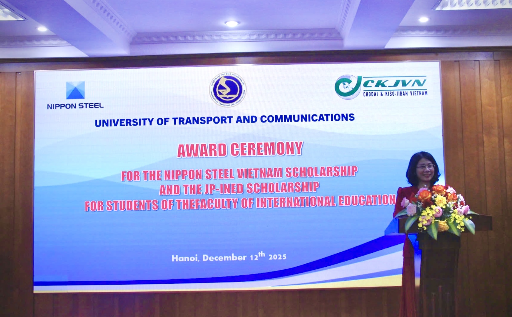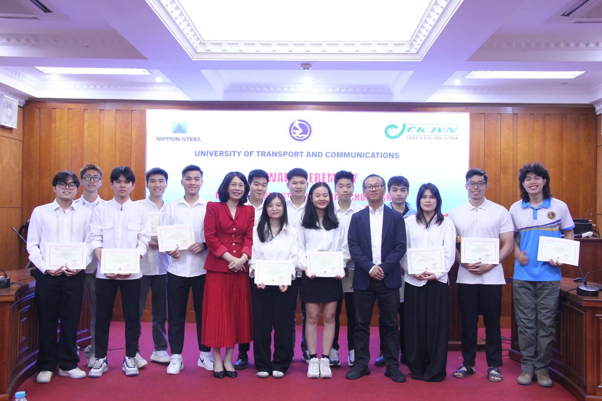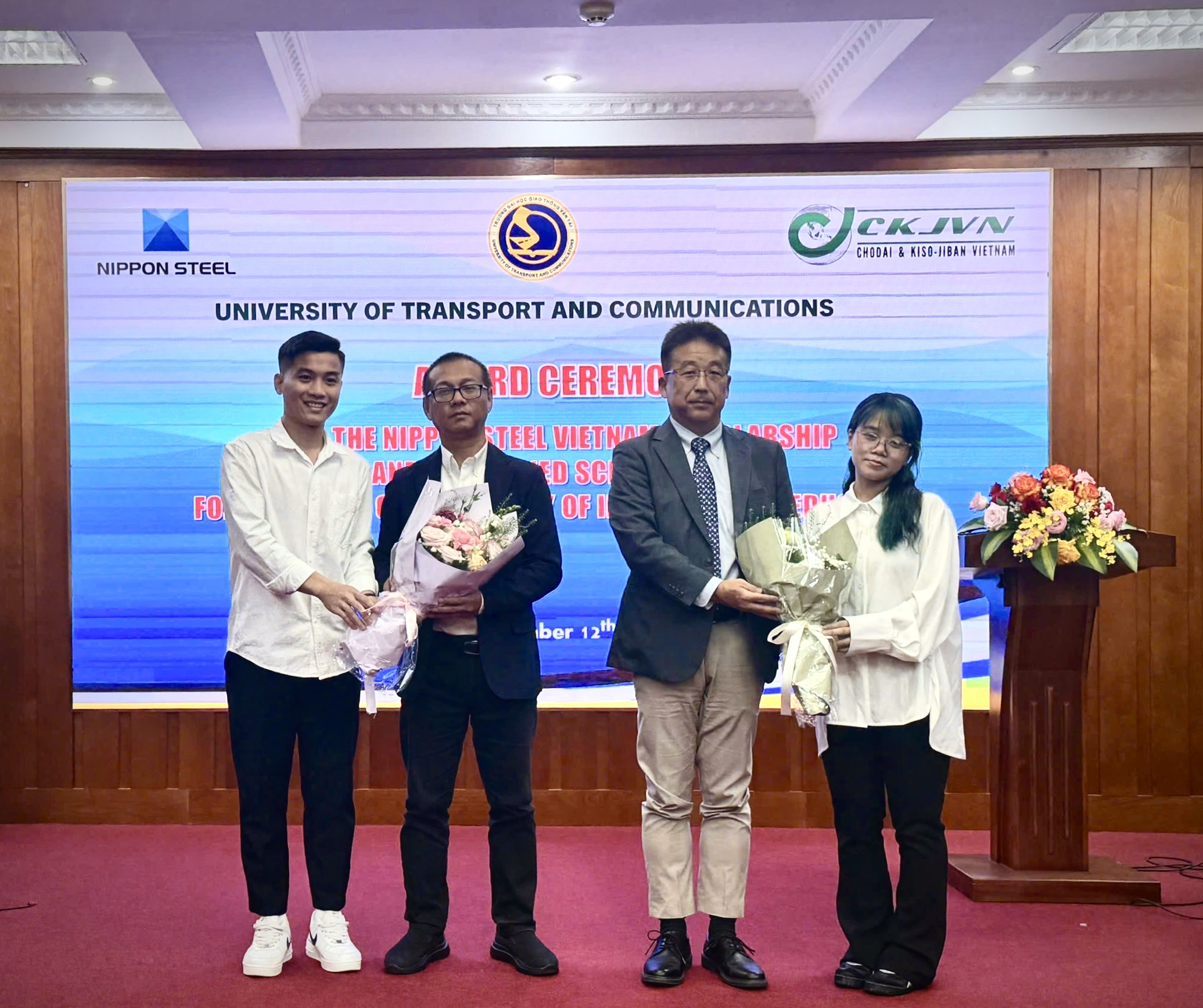Ngày 12/12/2025, Công ty TNHH Chodai & Kiso-Jiban Việt Nam (CKJVN) đã tham dự Lễ trao học bổng Nippon Steel Việt Nam và JP-Ined năm 2025 tại Khoa Đào tạo Quốc tế – Trường Đại học Giao thông Vận tải.