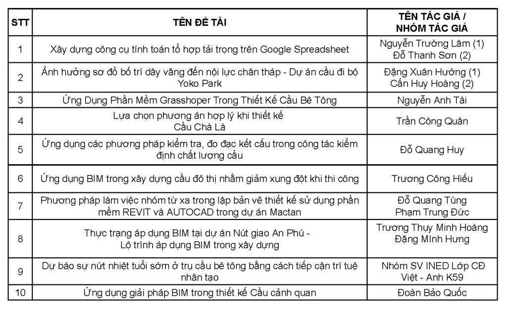 Về phần các đề tài nghiên cứu, hội thảo quy tụ 10 nhóm tác giả tham gia trình bày, các chủ đề nghiên cứu đa dạng có liên quan mật thiết đến lĩnh vực hoạt động của hai công ty CKJVN, HPEC cũng như chương trình đào tạo của trường đại học GTVT.