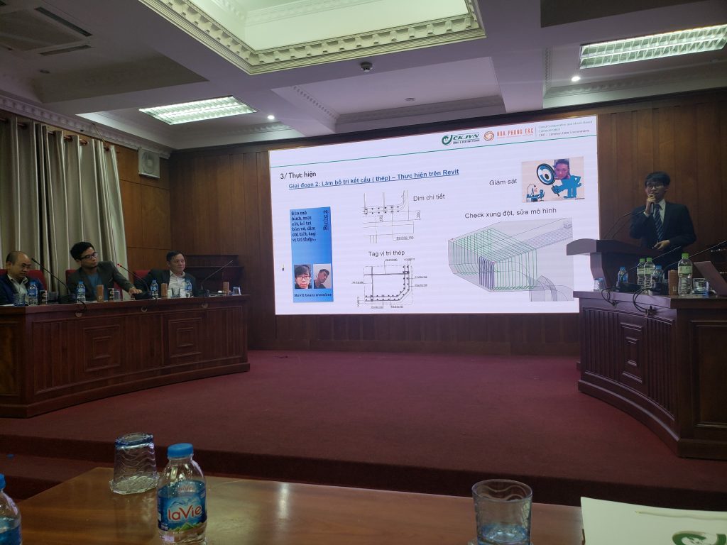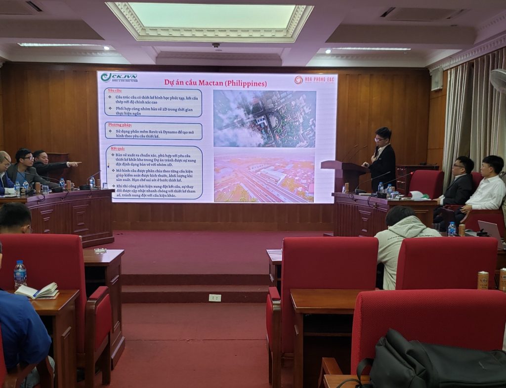 BTC trao giải cho đề tài “Phương pháp làm việc nhóm từ xa trong thiết lập bản vẽ thiết kế sử dụng phần mềm REVIT và AUTOCAD trong dự án Mactan” đồng giải ba.
