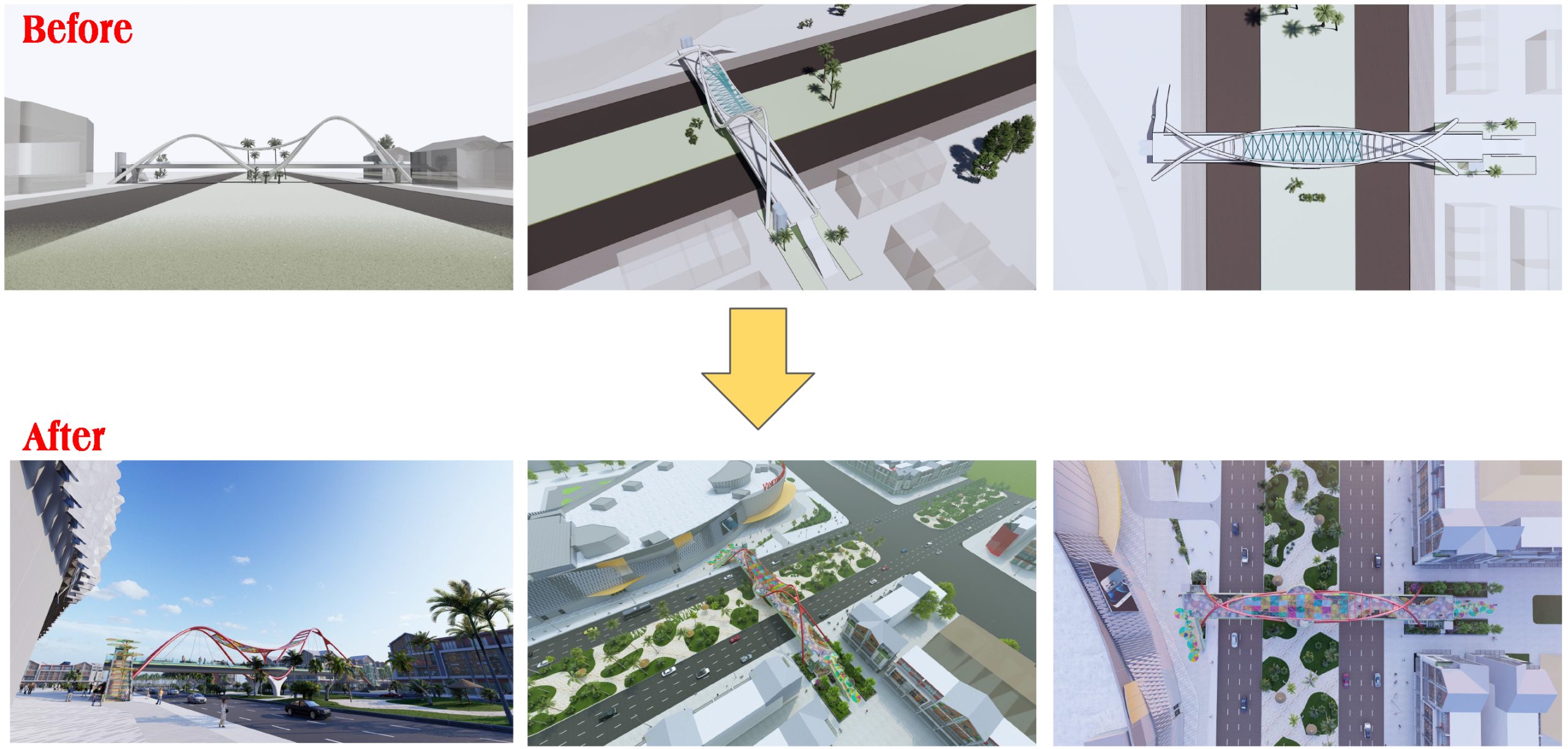 The team of architects received the design request in early March 2024, immediately following the Lunar New Year holiday. Within one month, the team had to propose and finalize the entire concept for the two pedestrian bridges, meaning they had only about two weeks to complete one bridge.