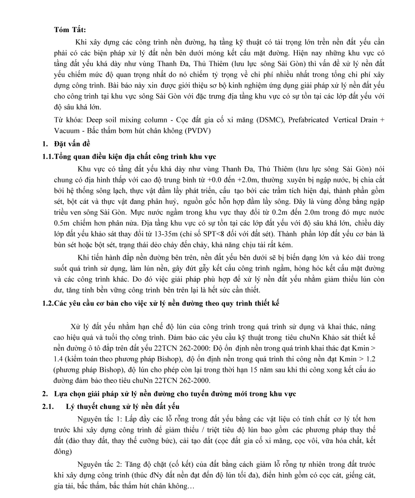 GIỚI THIỆU CÁC GIẢI PHÁP XỬ LÝ NỀN ĐẤT YẾU CHO NỀN ĐƯỜNG KHU VỰC SÔNG SÀI GÒN
