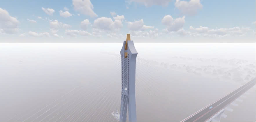 Cầu dây văng với hai trụ tháp hình chữ A cao 110m