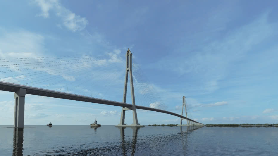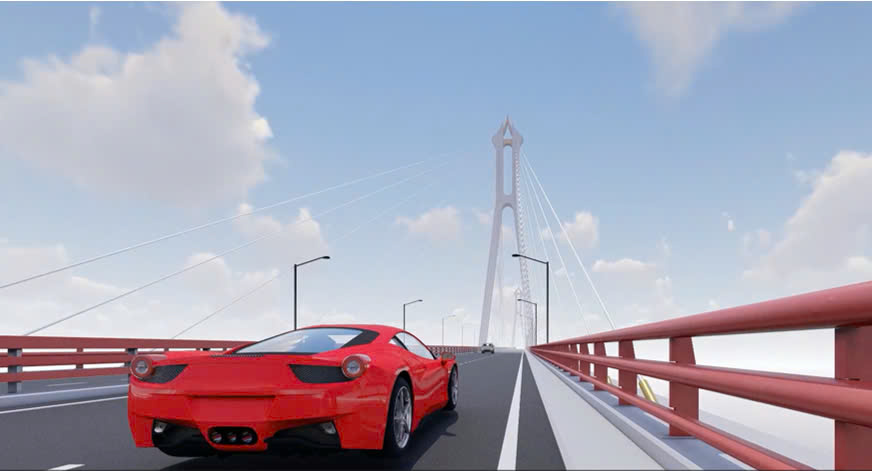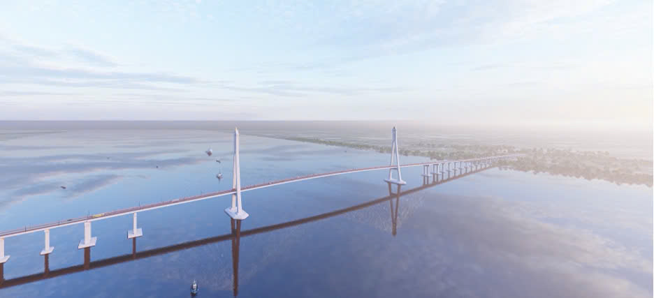Phối cảnh cầu Đại Ngãi 1 bắc qua luồng Định An, sông Hậu
