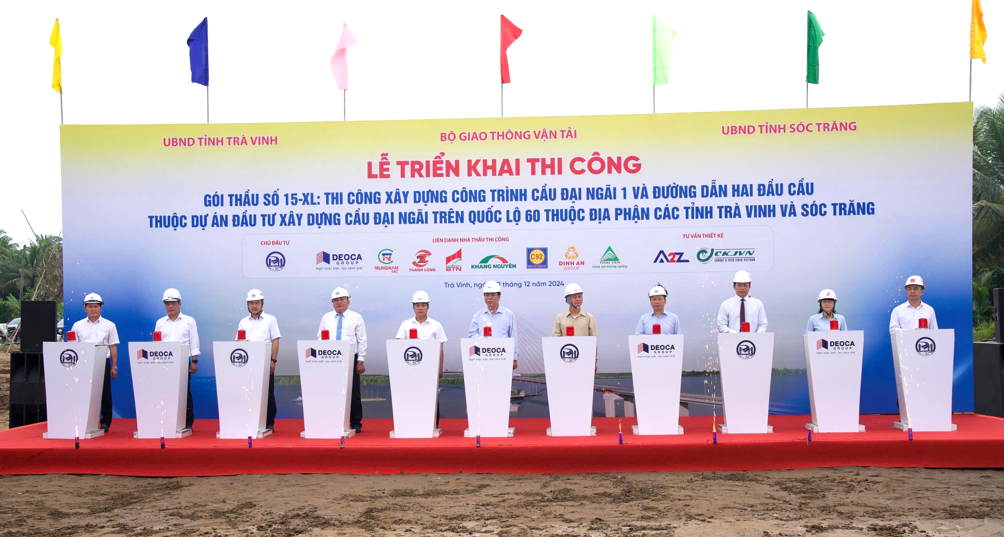 Sáng ngày 09/12/2024, Ban quản lý dự án 85 (Bộ GTVT) tổ chức Lễ triển khai thi công Gói thầu 15 – XL thi công xây dựng cầu Đại Ngãi 1 và đường dẫn 2 đầu cầu thuộc Dự án đầu tư xây dựng cầu Đại Ngãi. Đây là một dự án quan trọng, nằm trên trục giao thông chiến lược ven biển kết nối các tỉnh Đồng bằng sông Cửu Long, cải thiện hệ thống hạ tầng giao thông của khu vực, thúc đẩy phát triển kinh tế, xã hội, đảm bảo quốc phòng, an ninh, nâng cao đời sống nhân dân của các tỉnh Tây Nam Bộ nói chung và hai tỉnh Trà Vinh, Sóc Trăng nói riêng. Sau khi Dự án cầu Đại Ngãi hoàn thành, sẽ thông toàn tuyến QL60, rút ngắn được khoảng 80km từ Cà Mau đi qua Sóc Trăng, Bạc Liêu đến Thành phố Hồ Chí Minh so với đi trên tuyến Quốc lộ 1 hiện nay.
